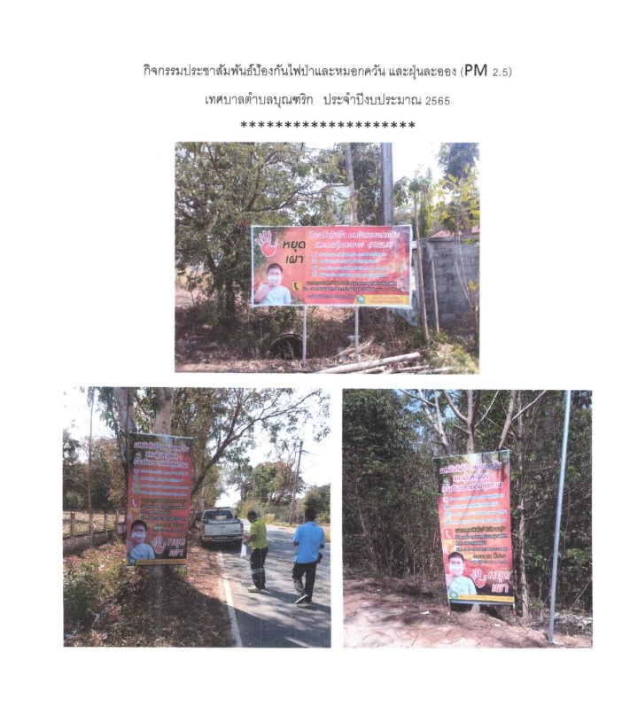 เทศบาลตำบลบุณฑริกดำเนินการประชาัมพันธ์ป้องกันไฟป่าและหมอกควัน และฝุ่นละออง PM2.5 เพื่อประจำปี 2565