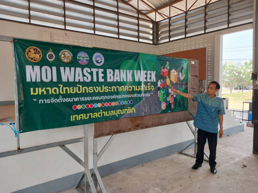 เทศบาลตำบลบุณฑริก นำโดยนายสุรสิทธิ์ อักษร รองนายกเทศมนตรีตำบลบุณฑริก ประชาสัมพันธ์ ผลการจัด MOI Waste Bank Week - มหาดไทยปักธงประกาศความสำเร็จ 1 องค์กรปกครองส่วนท้องถิ่น 1 ธนาคารขยะรประจำปี 2567