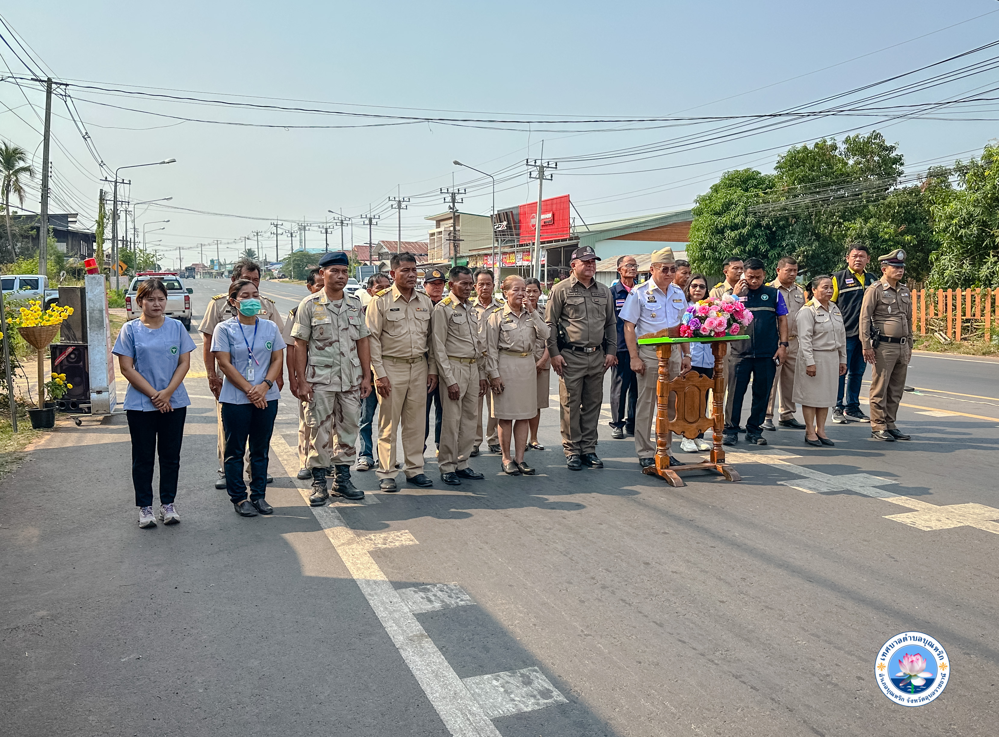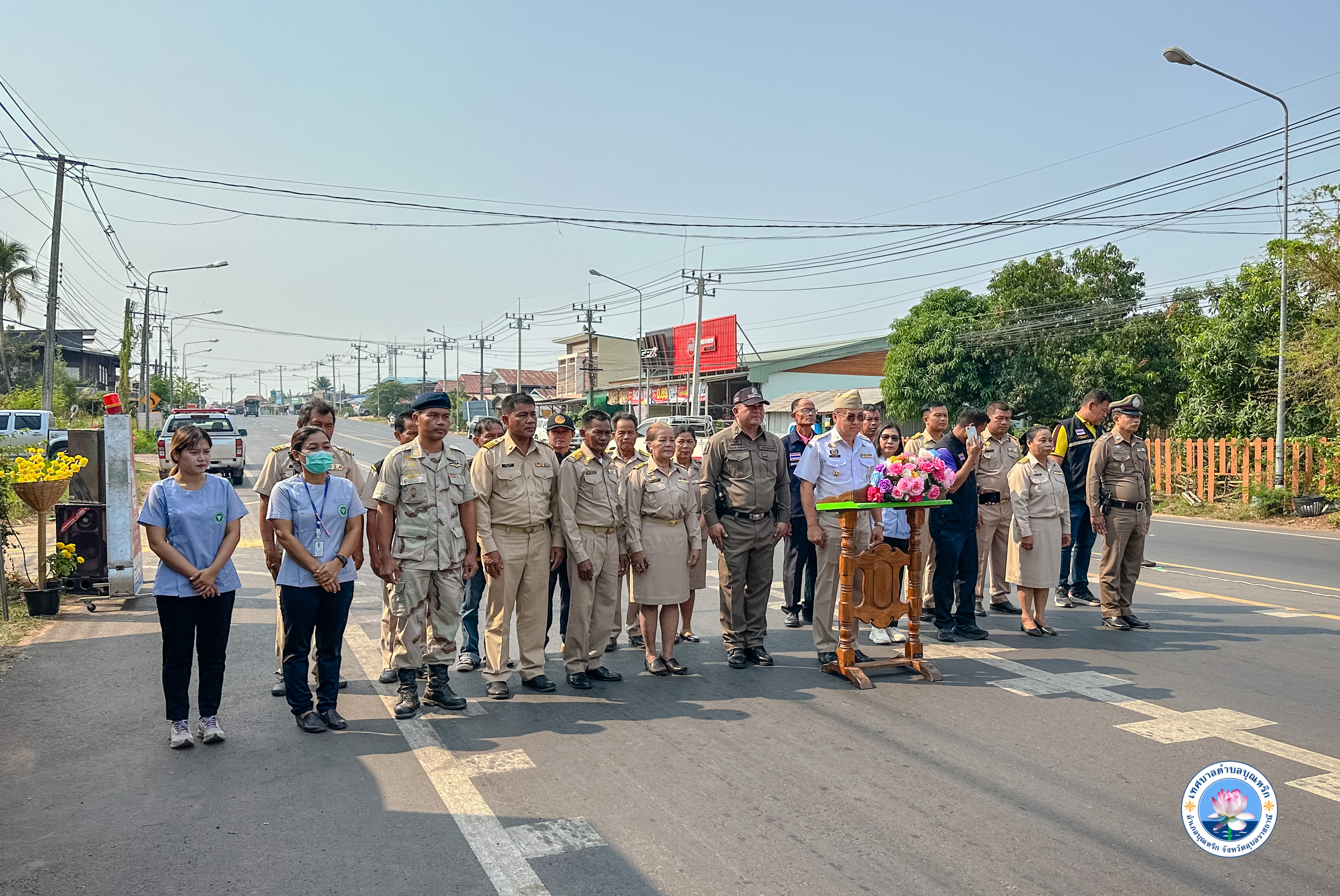 วันพฤหัสบดี, 11 เมษายน 2567 09:00เทศบาลตำบลบุณฑริก นำโดย นายวรพจน์ บุตรมาตย์ นายกเทศมนตรีตำบลบุณฑริก รองนายกเทศมนตรี คณะบริหารเทศบาล ปลัดเทศบาล หัวหน้าสำนักปลัด สมาชิกสภาเทศบาล ข้าราชการ ลูกจ้าง พร้อมนายอำเภอบุณฑริก ได้เข้าร่วมกิจกรรม โครงการตั้งจุดตรวจบริการประชาชน รณรงค์ป้องกันและลดอุบัติเหตุทางถนนในช่วงเทศกาลวันสงกรานต์ ระกว่างวันที่ 11-17 เมษายน 2567