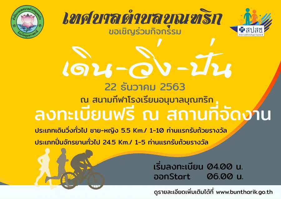 ประชาสัมพันธ์ กิจกรรม โครงการเดิน วิ่ง ปั่น สืบสานปณิธานสุขภาพดีวิถีบุณฑริก ประจำปีงบประมาณ พ.ศ. 2564