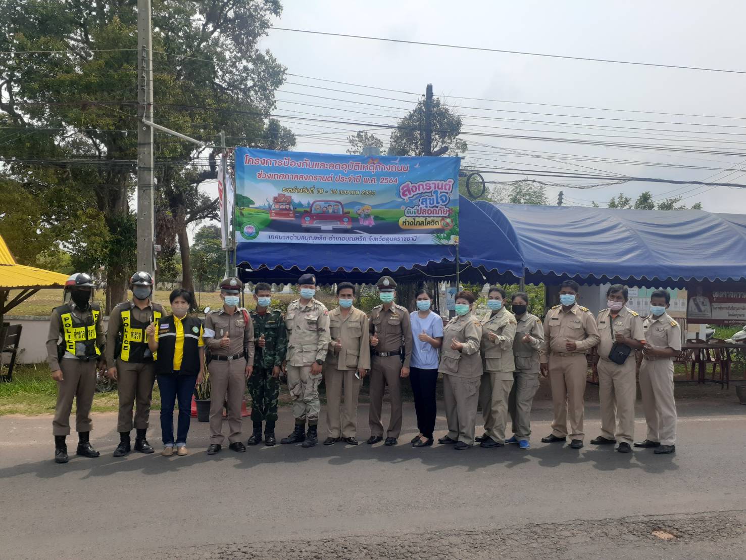 ปลัดเทศบาลตำบลบุณฑริก พร้อมด้วย หัวหน้าสำนักปลัดเทศบาลตำบลบุณฑริก และส่วนราชการต่างๆ ร่วมพิธีเปิด โครงการป้องกันและลดอุบัติเหตุทางถนนช่วงสงกรานต์ ประจำปี พ.ศ. 2564