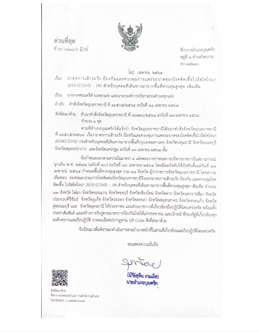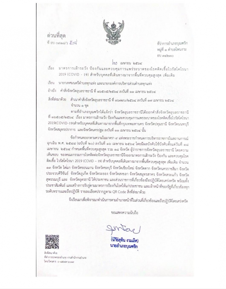 วันพุธ, 21 เมษายน 2564 09:56มาตรการเฝ้าระวัง ป้องกันและควบคุม การแพร่ระบาดของ โควิด 2019 สำหรับบุคคลที่เดินทางมาจากพื้นที่ควบคุม