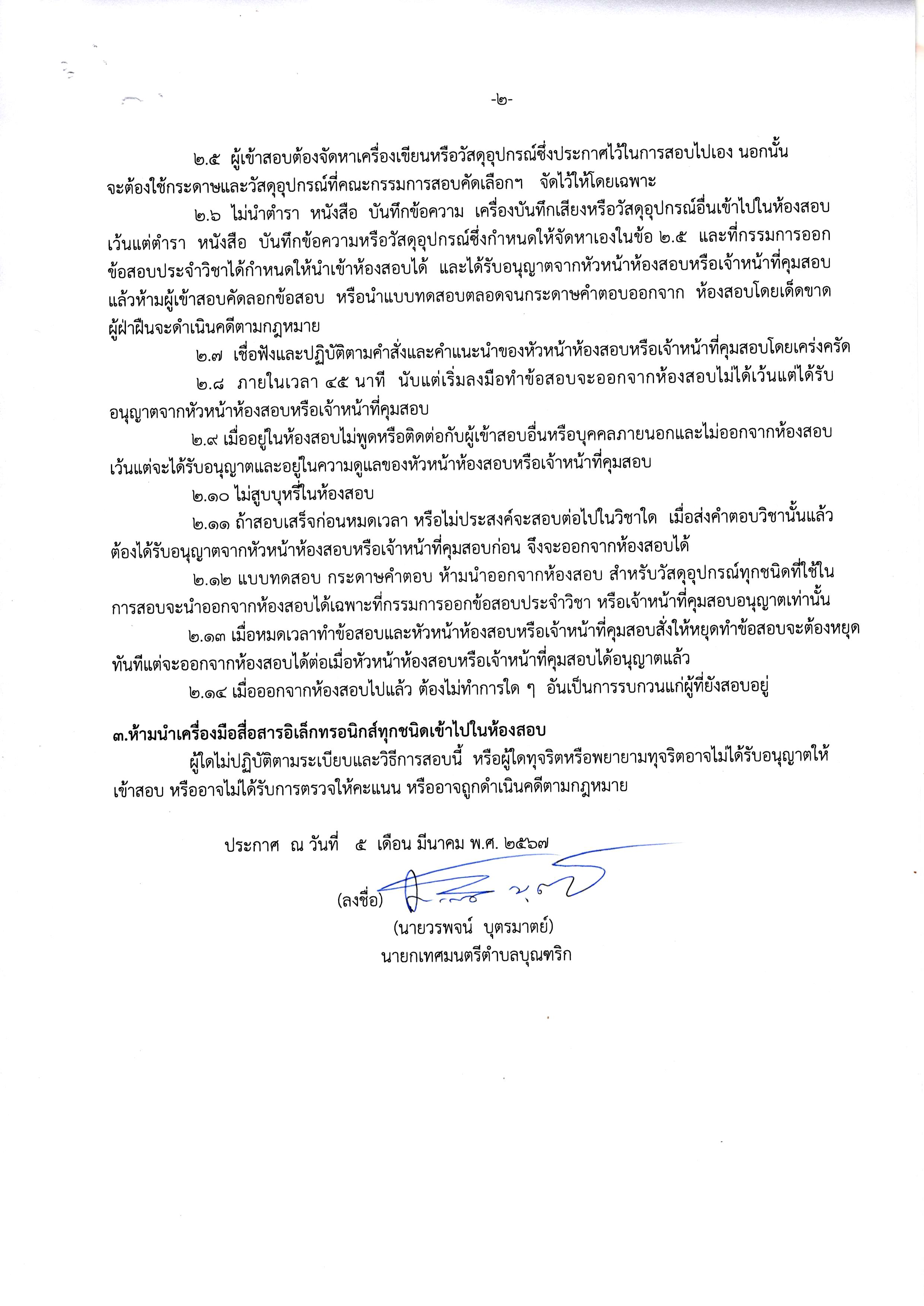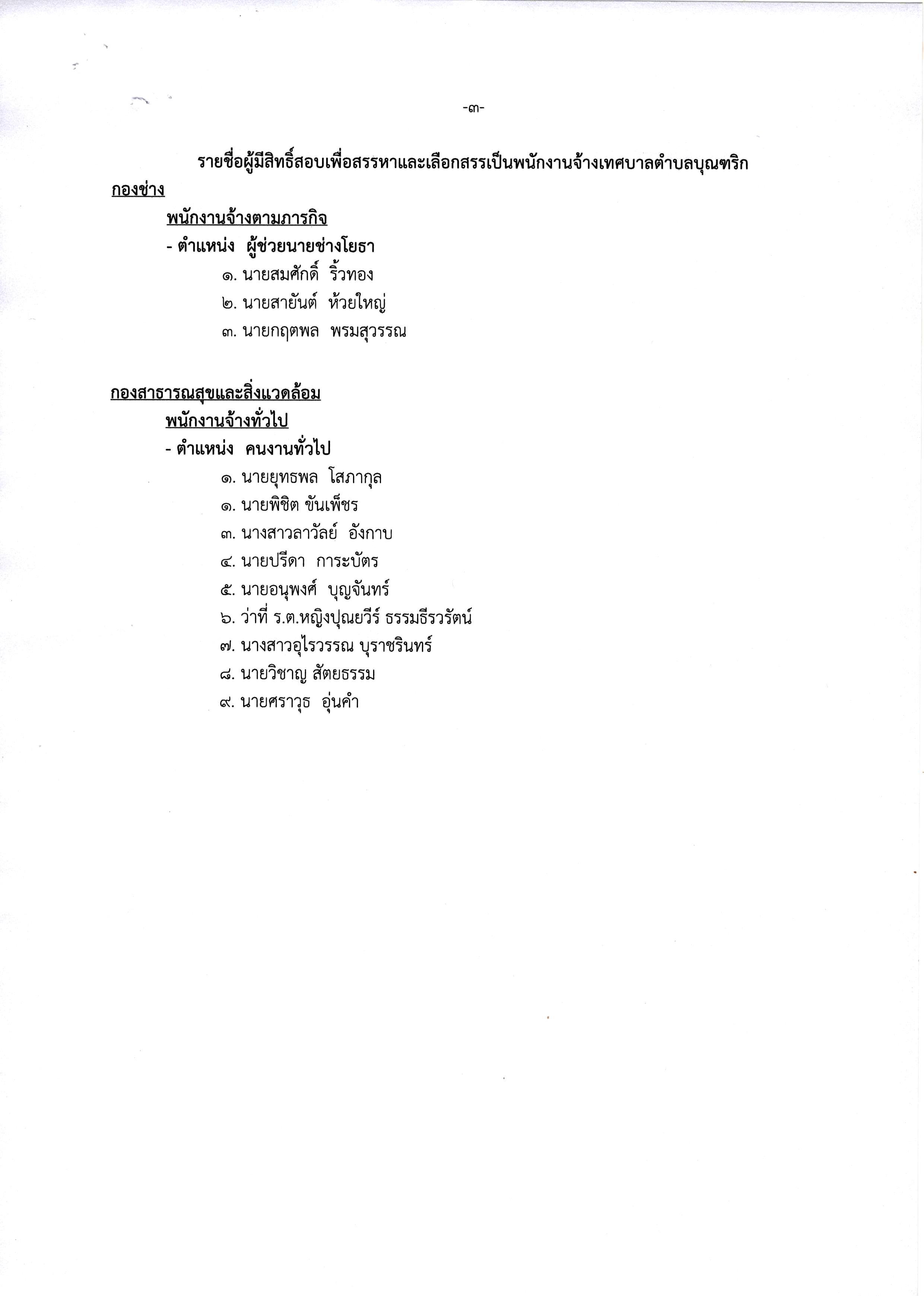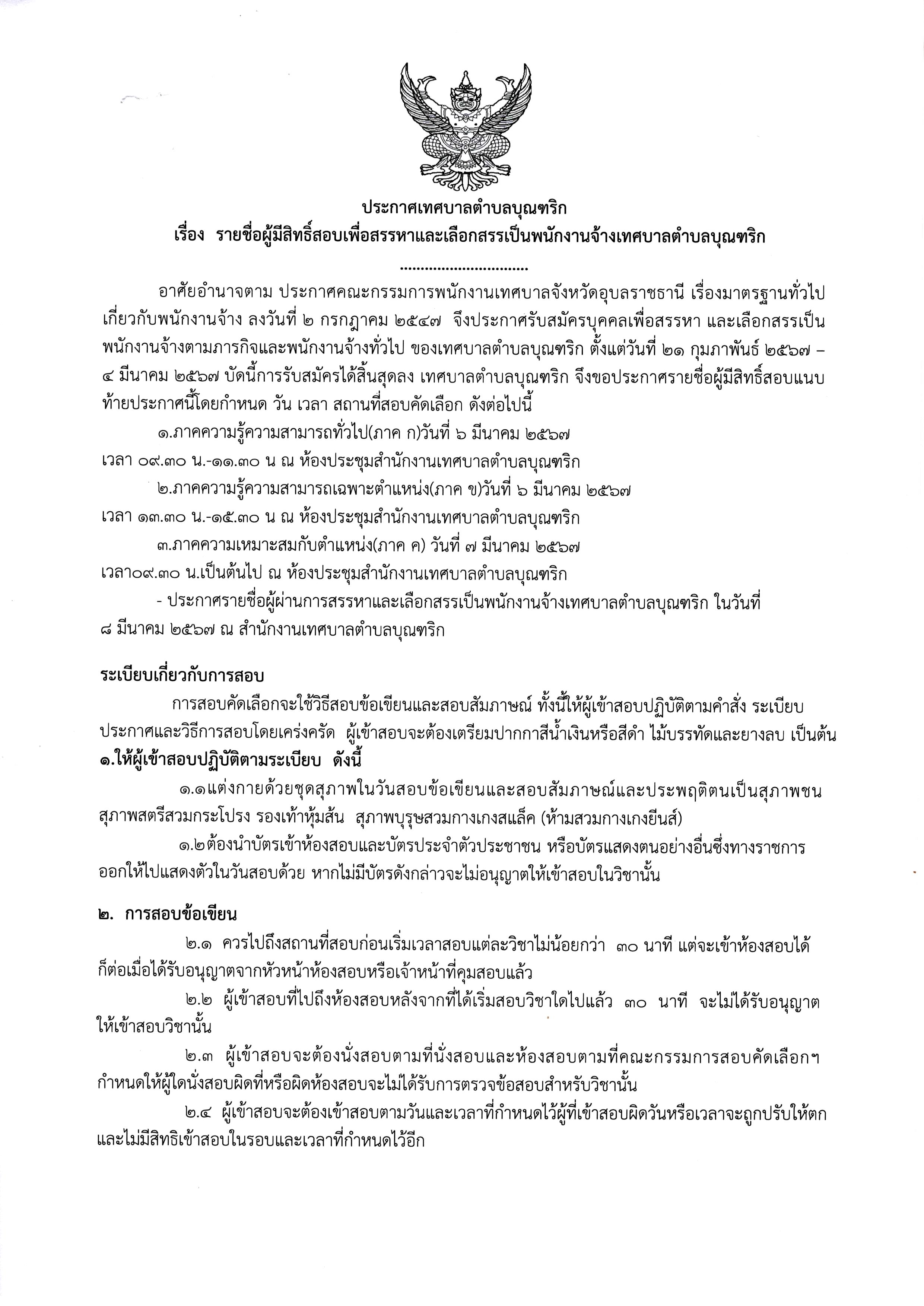 ประกาศเทศบาลตำบลบุณฑริก เรื่อง รายชื่อผู้มีสิทธิ์สอบเพื่อสรรหาและเลือกสรรเป็นพนักงานจ้างเทศบาลตำบลบุณฑริก
